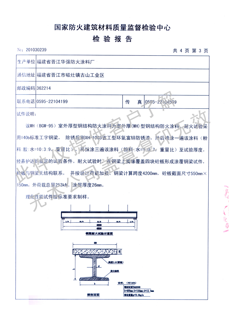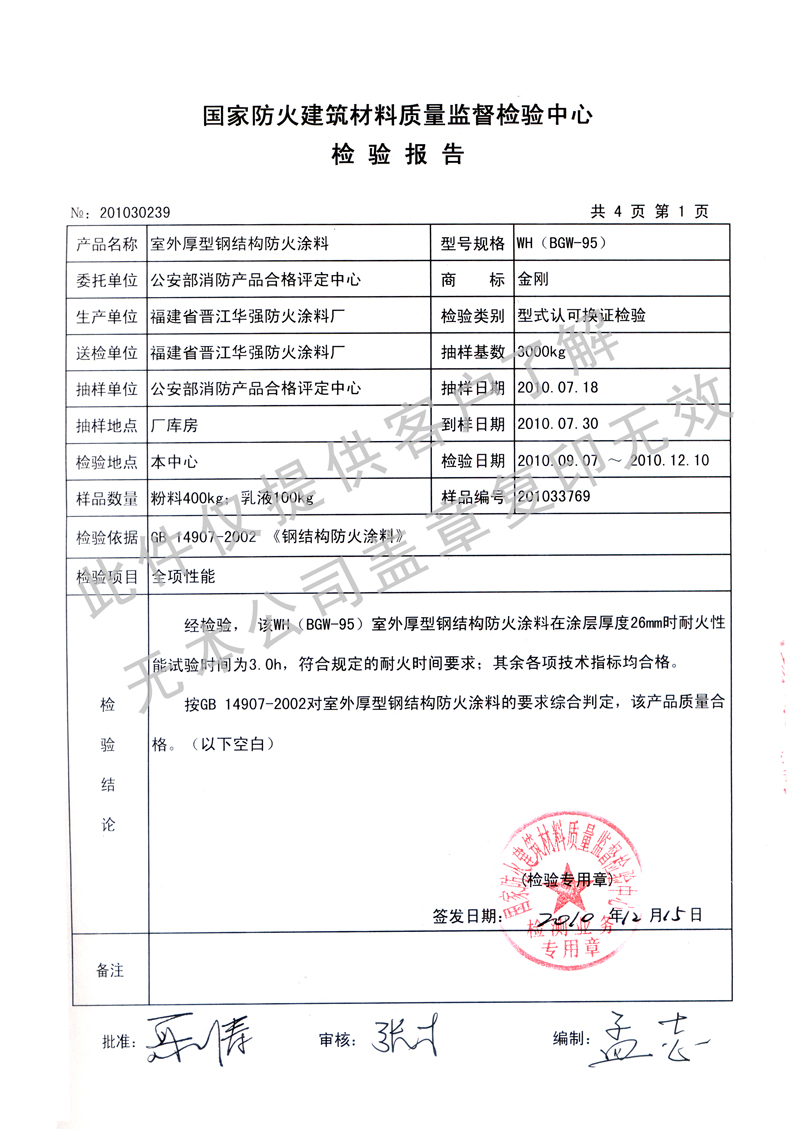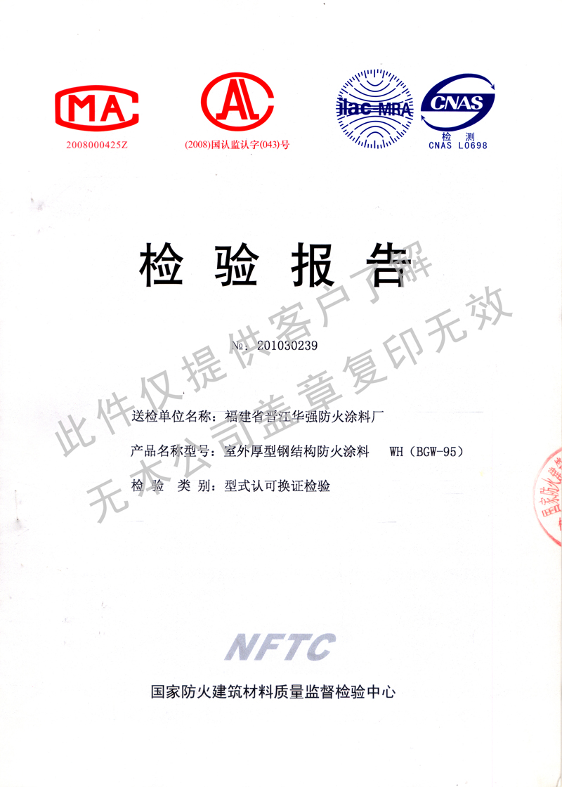 國家防火建筑材料質(zhì)量檢驗(yàn)檢測中心檢測通過的《檢驗(yàn)報(bào)告》